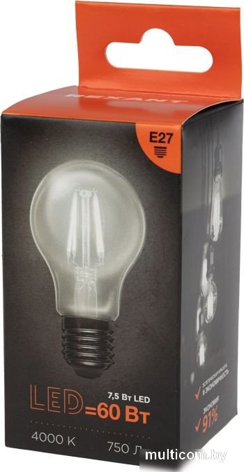 | Информация | Филаментная лампа в форме груши REXANT используется для общего и для дизайнерского и освещения комнат, домов, гостиниц и других объектов. Оснащена прозрачной колбой, что препятствует искажению световой кривой и обеспечивает высокую яркость свечения. Лампа не нагревается благодаря равномерному распределению температуры. За счет распространения света во всех направлениях имеет широкий угол освещения и может быть установлена любым способом. Обладает высокой энергоэффективностью, износоустойчивостью и долгим сроком службы. Белое свечение лампы в 4000К рекомендовано для кухонь, гостиных, кабинетов и других помещений, в которых требуется концентрация внимания. Мощность – 7,5Вт, цоколь – Е27. |
