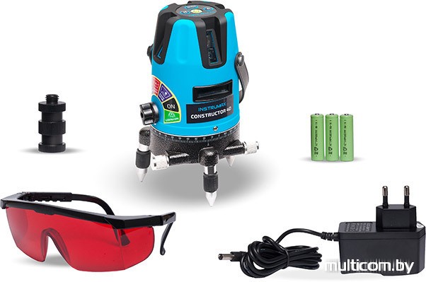 | Информация | Constructor 4D — это точный линейный лазерный нивелир, предназначенный для работ внутри помещений и на улице. Constructor 4D строит 4 вертикальные линии (4V), 1 горизонтальную (Н), точку отвеса (D). Дополнительно на пересечении вертикальной и горизонтальной линии и на вертикале чуть выше сделаны лазерные точки. На большом расстоянии, когда лазерные лучи плохо видно, точки помогают обнаружить их. |