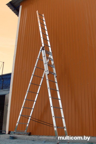 | Информация | Это лестницы, которые сочетают в себе сразу функции приставной лестницы, стремянки и двухсекционной лестницы. Эта лестница собрала в себе все преимущества односекционной и двухсекционной лестницы. Состоящая из трех частей она может использоваться в широком диапазоне высот. Имеется возможность использовать верхнюю секцию как отдельную небольшую приставную лестницу. |
