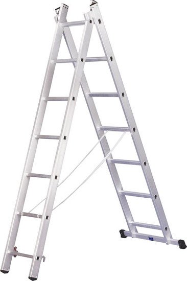 | Информация | Это лестница, которая может выполнять функции лестницы-стремянки и приставной лестницы. Преимущество двухсекционной лестницы относительно односекционной - это меньшие габариты при одинаковой досягаемой высоте, возможность использовать лестницу как стремянку, отсутствие необходимости в вертикальной опоре, регулируемая высота подъема за счет своей телескопической конструкции, наличие стабилизатора увеличенной ширины для более высокой устойчивости. |