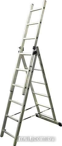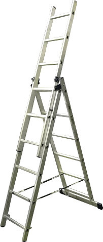 | Информация | Лестница трехсекционная — это универсальная алюминиевая лестница, которая сочетает в себе функции приставной лестницы, лестницы-стремянки и двухсекционной лестницы. Трехсекционная алюминиевая лестница собрала в себе все преимущества односекционной и двухсекционной лестниц. Данная лестница универсальна, состоит из трех частей и может использоваться в широком диапазоне высот. Имеется возможность использовать верхнюю секцию как отдельную небольшую приставную лестницу. |