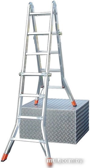| Информация | - Телескопическая четырехсекционная алюминиевая шарнирная лестница- Может использоваться как две отдельные двусторонние стремянки и как приставная лестница- Телескопическое выдвижение наружных секций лестницы от перекладины к перекладине позволяют устанавливать лестницу на различных по высоте поверхностях- Запатентованная система Clickmatic обеспечивает легкую и быструю фиксацию боковин лестницы- Из внутренних и наружных секций можно создать две отдельные двусторонние стремянки- Опорные заглушки противоскользящие двухкомпонентные из твердого и мягкого материалов, что обеспечивает прочное соединение с боковиной и надежное сцепление с опорной поверхностью- Дополнительная устойчивость благодаря угловым раскосам |