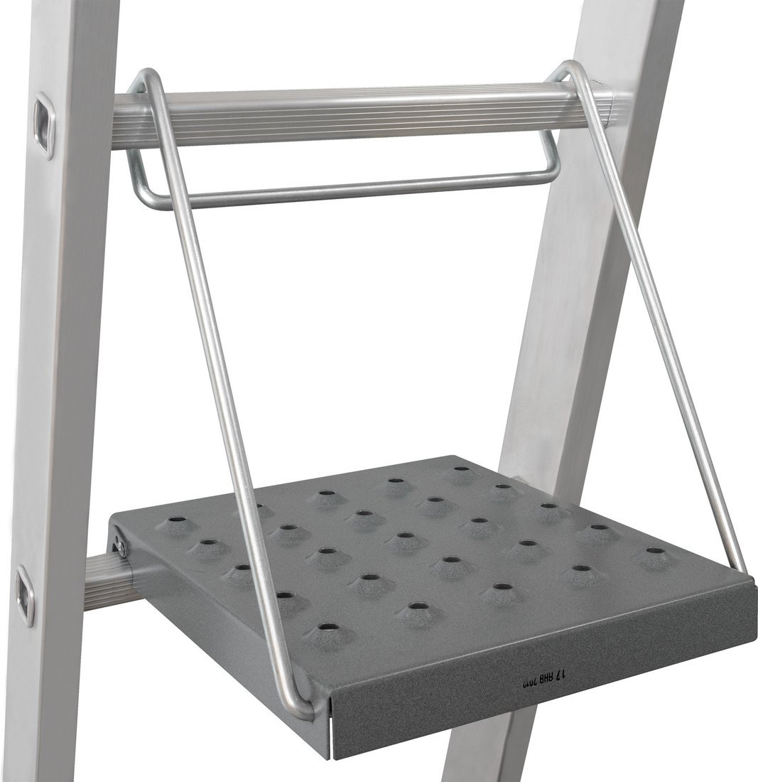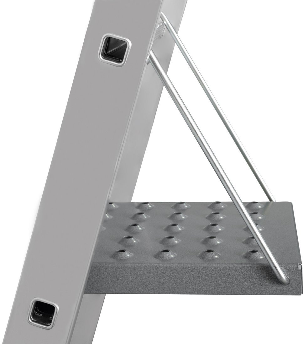 | Информация | - Конструкция обеспечивает надежное крепление площадки на любой ступени лестницы. - Рельефная поверхность площадки предотвращает скольжение. |