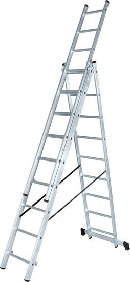 | Информация | - прочность и надёжность при небольшом весе изделия- стойки и ступени изготовлены из прессованного профиля- многократная развальцовка в соединении ступеней со стойками обеспечивает высокую прочность и долговечность- рифлёные ступени с шагом 260 мм для безопасного подъёма и спуска- алюминиевые направляющие кронштейны надёжно удерживают выдвижную секцию во всех рабочих положениях- зацепы с автоматическим фиксатором- широкая поперечная траверса обеспечивает высокую устойчивость- надёжно закреплённые на стойках и траверсе пластиковые наконечники препятствуют скольжению- верхняя секция легко вынимается и устанавливается и может служить отдельной приставной лестницей- функция лестничных пролётов с использованием верхней съёмной секции |