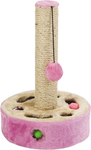 | Информация | В нижней части когтеточки находится круглая коробка с несколькими отверстиями. В этих отверстиях спрятаны плюшевые шарики. Ваша кошка может найти эти шары, вставляя свои лапы в отверстия и пытаясь почувствовать шары. Кроме того, ваша кошка может также царапать столбик из сизаля или поиграть лапой с плюшевым шариком. |
