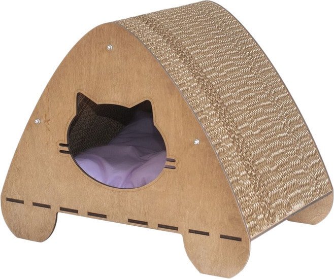 | Информация | Как в культуре североамериканских индейцев Апачи проповедуется близкая связь с природой, так и домик Апачи выполнен из картона, состоящего из 100% целлюлозы, который по запаху напоминает древесную кору, о которую дикие предки кошек точили когти в природе.Подойдет для маленьких и средних питомцев.В производстве не используется клей, который может стать причиной аллергии у некоторых пород животных.Домик выполнен из фанеры и качественного картона. Картон по истечению срока службы можно заменить. |