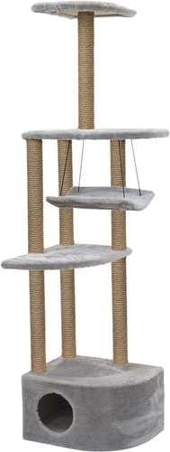 | Информация | Игровой многоуровневый комплекс состоит из набора элементов: домика, трёх полок, гамака и семи труб-когтеточек. Домик, полки - угловые и гамак изготовлены из ДСП и ДВП, обработанные игрушечным мехом. При сборке домика использовалась узкая скоба, позволяющая "скрыть" места соединения различных деталей. Для облегчения транспортировки данное изделие изготовлено разбираемым, упакованным в жесткую коробку. Расположение домика и угловых полок, образует ступени. Размер верхней полки 37*27см. |