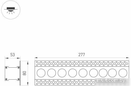 | Информация | Встраиваемый безрамочный светильник под шпаклевку. Мощность 20 Вт, св. поток 1500 лм, 75 лм/Вт, теплый 3000 K, CRI98, угол 30°, напряжение питания 230 В. Белый прямоугольный корпус из алюминия, экран PMMA, степень защиты IP20. Размер: длина 277 мм, ширина 38 мм (с фланцем 80 мм), высота 53 мм. Монтаж встраиваемый, установочное отверстие длина 280 мм, ширина 50 мм. Драйвер 17-29 В, 700 мА, пульсация |