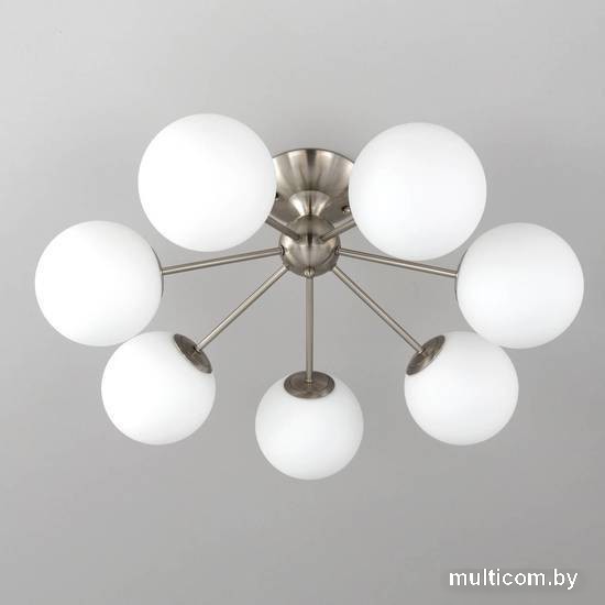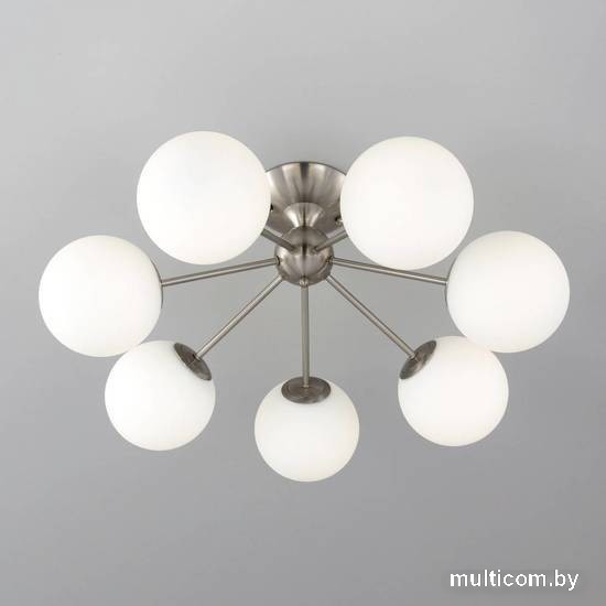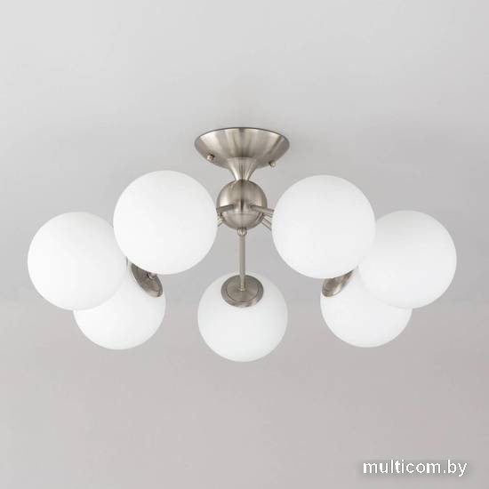 | Информация | Потолочная люстра Citilux Томми CL102174 для интерьеров, оформленных в современном стиле. Корпус металлический, цвет матовый хром. Плафоны стеклянные, в форме шара, цвет белый матовый. В изделии 7 ламп с цоколем Е14, максимальной мощностью для ламп накаливания 40Вт. Светодиодные лампы можно использовать более яркие. Площадь освещения около 17м?. Модель подходит для всех типов потолков, в том числе натяжных. Тип крепления-планка. |