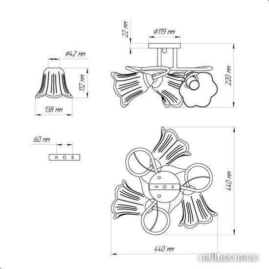 | Информация | Люстра отлично подойдет для установки на низкий потолок комнаты, оформленной в современном стиле. Потолочная люстра с плафонами из пластика осветит помещение площадью 12 м2. Источник света - лампы накаливания мощностью до 60 Вт, светодиодные лампы, энергосберегающие лампы. Узел крепления светильника на планку позволяет легко монтировать его на потолок, даже в случае устройства натяжного потолка. Модель произведена с использованием материалов: стекло и металл. Светильник дает максимум света, плафоны изготовлены из пластика. Плафоны легко моются и сохраняют свой безупречный внешний вид на протяжении всего срока эксплуатации. |