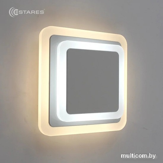 | Информация | ? Бра Estares Geometria Square 12W 2S-184x53-WHITE/WHITE-220-IP20_2021 имеет квадратную форму и строгий дизайн, выполнен из экологически чистых материалов акрила и металла. ? Можно устанавливать на потолок. Центральная часть вращается. ? Центр бра имеет декоративное напыление матовой порошковой краски, которая не выделяет запахов при нагревании. ? Источником света служит светодиодная лента, размещенная по окружности. ?? Отличительной особенностью данных бра является возможность выбора расположения маленького внешнего квадрата. |