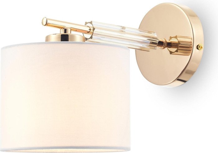 | Информация | Арматура - металл + стекло, цвет - золото. Универсальные тканевые абажуры в белом цвете. Декоративные элементы из прозрачного рельефного стекла. Источник света - лампа с цоколем Е27. |