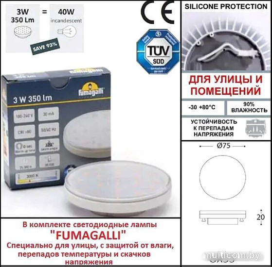 | Комплектация | В комплекте лампы "FUMAGALLI" 3W, яркость 350 Lm |
