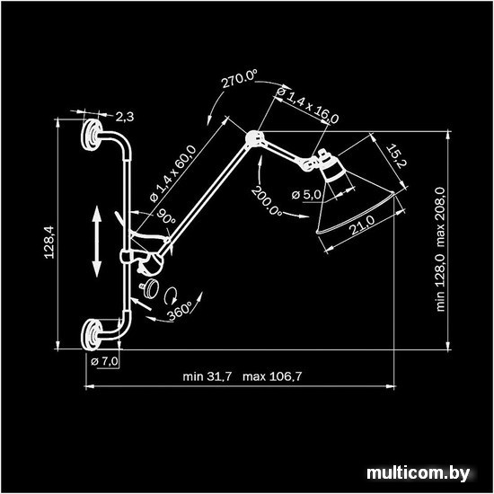 | Высота | 128 см (208 см) |