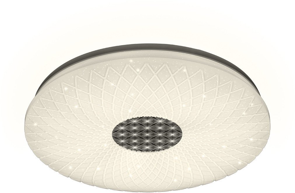 | Информация | - Светильник с универсальным дизайном подойдет любому помещению — от уютной спальни до гостиной в стиле хай-тек. - Оригинальные элементы, украшающие весь периметр плафона, делают его не просто источником света, а полноценной деталью интерьера. - Регулировка яркости и цветовой температуры позволяет подстроить светильник под ваше настроение. - Мягким теплым, естественным дневным и холодным белым светом можно управлять с помощью кнопок на пульте. - Дополнительное эстетическое удовольствие дарит эффект звездного неба. - Акриловый плафон со встроенными светодиодами гарантирует долгую и безопасную эксплуатацию светильника. - Эти материалы устойчивы к механическим воздействиям и минимально нагреваются в процессе работы. - Они не содержат токсичных веществ, поэтому не требуют особых условий использования и утилизации. - Площадь освещения: 20 м?. |