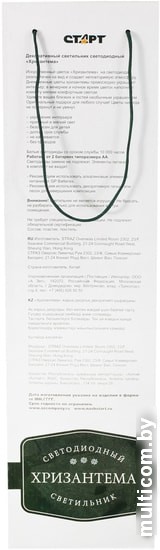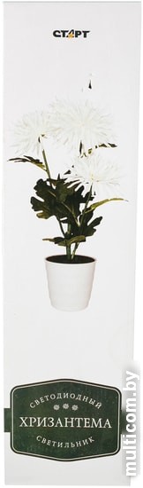 | Информация | Декоративный светильник в виде хризантемы станет прекрасным элементом интерьера днем, дополняющим ваши цветочные композиции и удивительным источником теплого мягкого свечения и хорошего настроения вечером.Батарейки в комплект не входят.Материал изготовления корпуса: пластик и ткань. |
