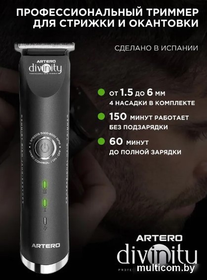 | Информация | ??Текст описания составлен при помощи искусственного интеллекта. - Универсальный триммер Artero Divinity - идеальный выбор для создания стильной прически, ухоженной бороды и усов. - Скорость работы двигателя 6 000 об/мин и время автономной работы до 2 часов 30 минут обеспечивают эффективную работу без перерывов. - Материал лезвий - нержавеющая сталь, а максимальная длина стрижки составляет 6 мм, что позволяет создавать разнообразные укладки и стили. - Вес всего 120 грамм делает триммер удобным в использовании, а комплектация лезвием, маслом и щеточкой для чистки обеспечивает длительный срок службы. - Триммер оснащен индикацией разряда и режима, а также имеет возможность быстрой зарядки за 1 час. - Для профессионального использования предусмотрены насадки-гребни, а минимальная длина стрижки составляет 1.5 мм, что делает его универсальным инструментом для создания различных образов. |