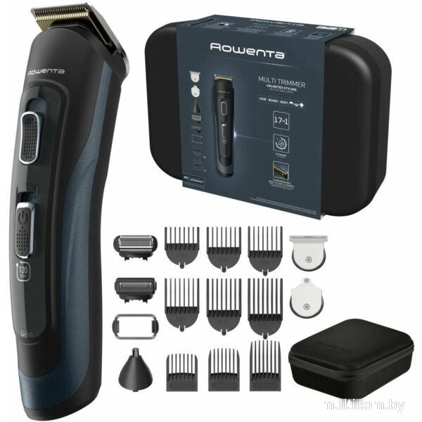 | Информация | -Многофункциональный триммер Rowenta Selectium 17 в 1 предназначен для ухода за волосами на голове, лице и теле. Благодаря разнообразию насадок и самозатачивающимся лезвиям с титановым покрытием, устройство обеспечивает качественную стрижку и моделирование бороды, усов, а также удаление нежелательных волос в носу и ушах. -Диапазон длины стрижки составляет от 0.5 до 18 мм, что позволяет выбрать оптимальную длину для любого стиля. Для удобства пользователя предусмотрены три регулируемых и шесть фиксированных гребней с шагом настройки 0.5 мм, а также специальные насадки для точной и аккуратной обработки труднодоступных зон. -Триммер оснащен литий-ионным аккумулятором, который обеспечивает до 120 минут автономной работы и поддерживает быструю зарядку за 90 минут. Светодиодный дисплей отображает уровень заряда и оставшееся время работы, что позволяет всегда контролировать состояние устройства. -Корпус прибора выполнен в черном и синем цвете, имеет эргономичную форму и защищен от влаги по технологии Wet&Dry, поэтому использовать триммер можно даже в душе. В комплект входят различные насадки, чехол и защитная крышка, что делает этот набор идеальным для домашнего и дорожного использования |