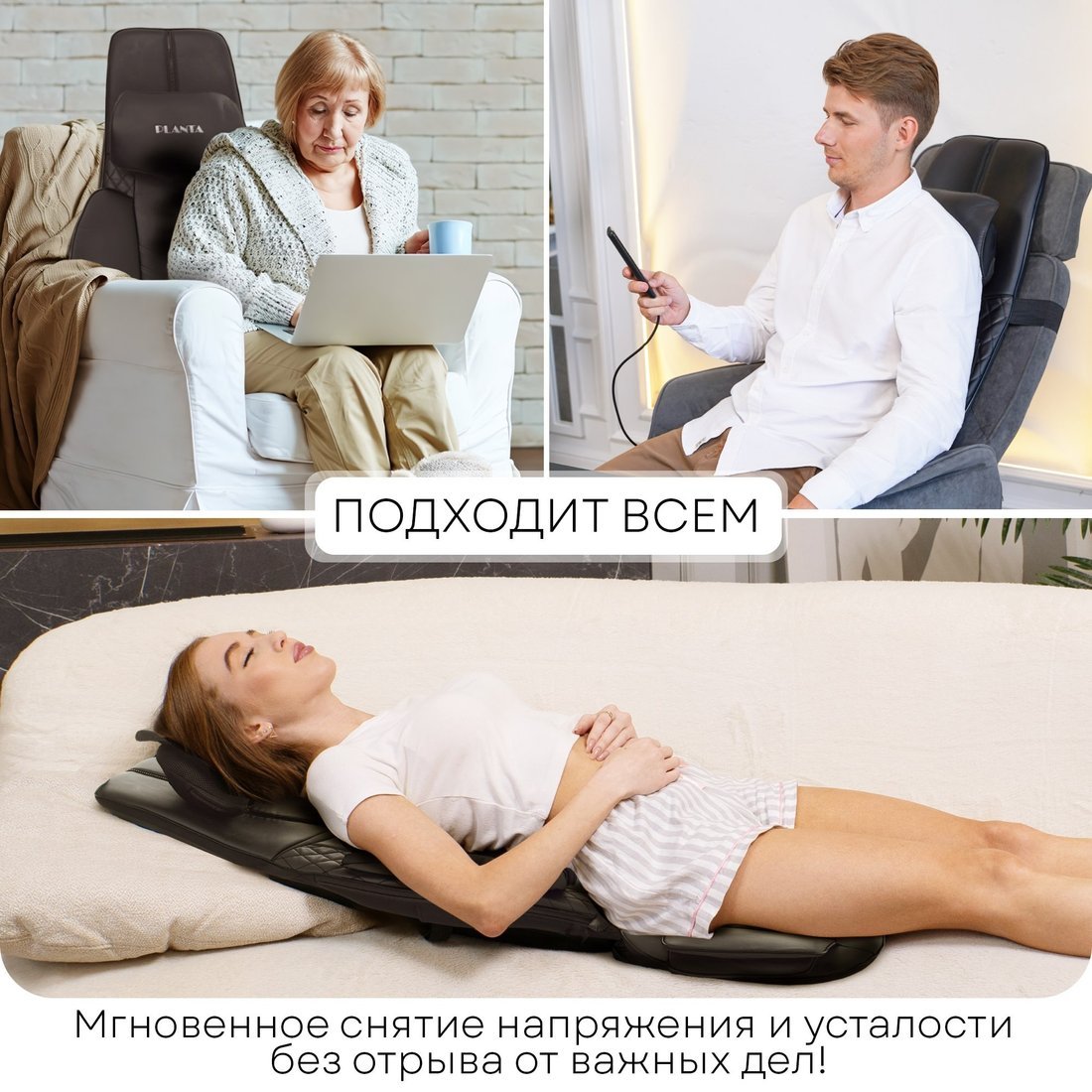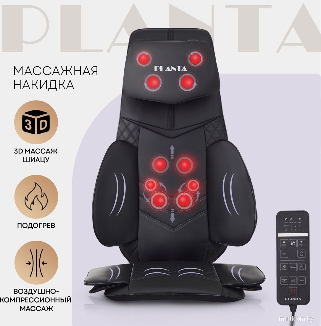 | Информация | - Массажная накидка Planta MN-3000 с компрессионным массажем сочетает в себе функции массажера для тела, шеи и спины. Она оборудована разминающими роликами Шиацу, регулируемой по высоте массажной подушкой для шеи и плеч, а также воздушно-компрессионным массажем в области поясницы, бедер и сиденья. Инфракрасный подогрев и автоадаптер делают использование накидки еще более удобным. - Эта накидка может использоваться как в автомобиле, так и в кресле, а также в качестве антицеллюлитного массажера. Уникальная настраиваемая по высоте массажная подушка с 4 роликами повторяет движения пальцев массажиста, обеспечивая глубокий и качественный массаж. Массажный механизм включает 6 узлов, которые эффективно разминают мышцы. - Накидка предлагает 5 различных режимов массажа: от полного массажа спины до точечного массажа и воздушно-компрессионного массажа поясницы и бедер. После сеанса вы почувствуете расслабление мышц, исчезновение скованности и снятие напряжения. Вы можете выбрать автоматический режим или настроить массаж на нужную зону, а также установить один из трех уровней интенсивности и включить подогрев роликов. - Изготовленная из износостойкой экокожи, массажная накидка приятна на ощупь и долговечна. Она рассчитана на пользователей весом до 120 кг. В накидке предусмотрен карман для хранения пульта управления и эластичные ремни для надежной фиксации на стуле, а автоадаптер позволяет использовать ее не только дома, но и в автомобиле. - Не упустите возможность подарить себе комфорт и расслабление в любое время! |