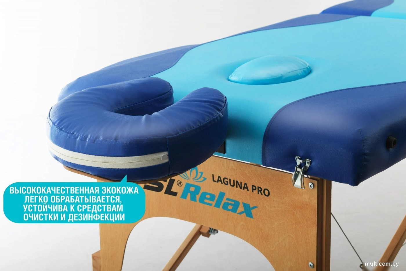 Информация | Массажный стол — это складная модель усиленной конструкции, которая включает в себя ряд важных преимуществ: надежность. Прочный деревянный каркас рассчитан на пользователей различной весовой категории и выдерживает максимальную нагрузку — 250 кг; удобство. Продуманная регулируемая по высоте конструкция обеспечивает максимальный комфорт как для клиента, так и для мастера, позволяя подобрать оптимальное положение. Комплектацией предусмотрены мягкие подлокотники и подголовник; долговечность. Высокие показатели прочности комплектующих повышают срок эксплуатации изделия. В Laguna Pro используются качественные материалы, стойкие к дезинфицирующим средствам, что обуславливает длительный срок эксплуатации массажного оборудования; универсальность. Модель можно использовать для лечебного, расслабляющего, косметического массажа; качество. Поверхность ложа выполнена из высококачественной износостойкой экокожи, которая легко обрабатывается. Материал хорошо переносит средства очистки и дезинфекции; мобильность. Стол трансформируется в чемодан, что удобно при хранении и транспортировке; современный дизайн. Гармоничная комбинация двух цветов экокожи и натуральное дерево задают привлекательный внешний вид модели. |