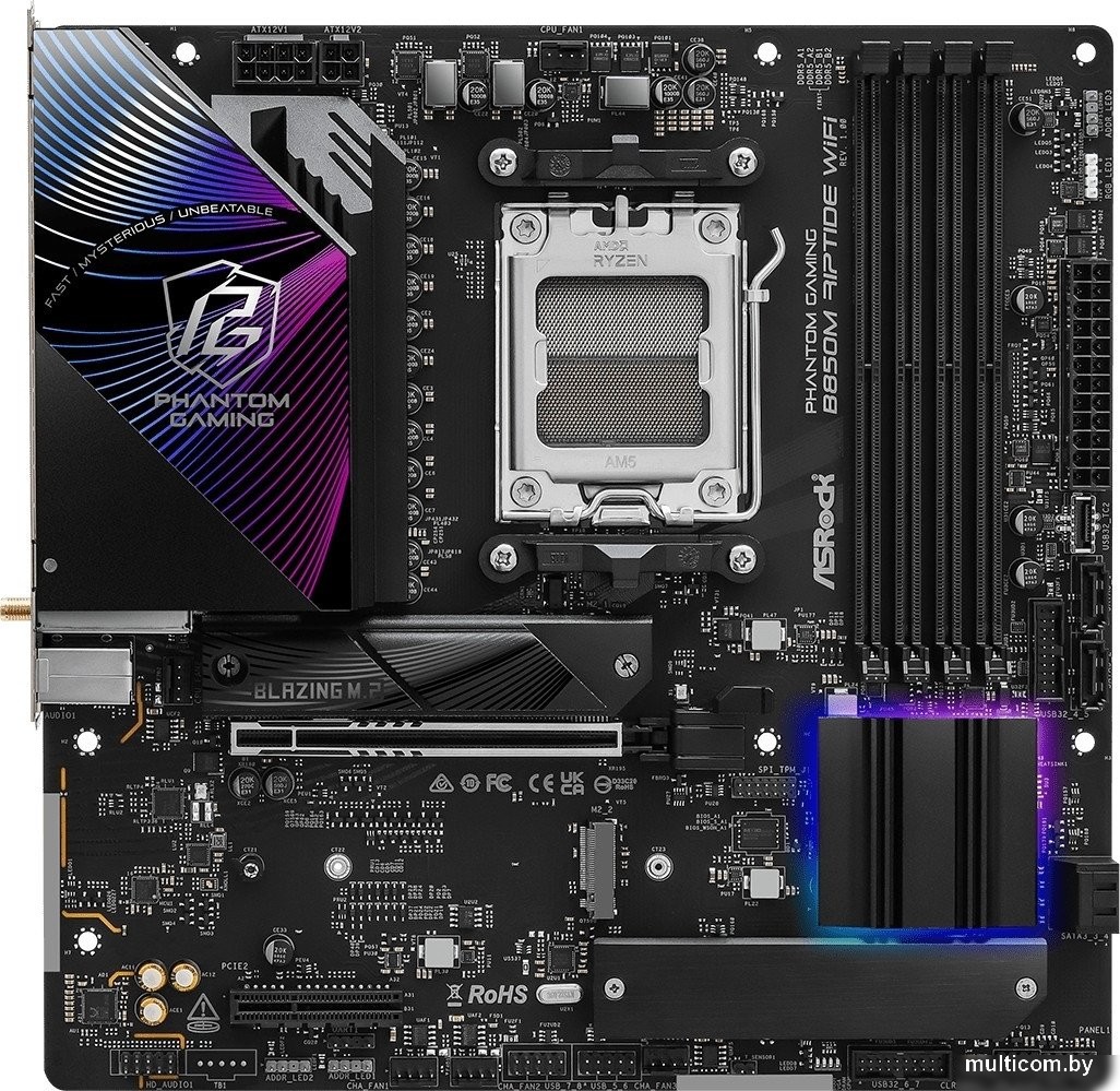 | Информация | - ASRock B850M Phantom Gaming Riptide WiFi - современная материнская плата формата mATX, созданная для энтузиастов и геймеров, поддерживающая процессоры AMD Ryzen серий 9000, 8000 и 7000 на сокете AM5. Модель оборудована мощной 12+2+1-фазной системой питания с радиаторами на VRM, что обеспечивает надежную работу и отличный потенциал для оверклокинга. - Плата поддерживает установку до 256 ГБ оперативной памяти DDR5 с частотами до 8000 МГц и профилями XMP/EXPO, а также оснащена тремя слотами M.2 (включая PCIe 5.0 x4) и четырьмя портами SATA 3.0 для современных и скоростных накопителей. Для видеокарт предусмотрены два слота PCI Express (x16 и x4) с поддержкой PCIe 5.0 для максимальной производительности. - Модель отличается богатым набором подключений:скоростной LAN 2.5 Гбит/с, новейший модуль Wi-Fi 7 (802.11be), Bluetooth 5.4, а также разнообразные USB-порты, в том числе USB 3.2 Gen2 Type-A и Type-C. Звуковая подсистема реализована на кодеке Realtek ALC1220 с поддержкой 7.1-канального HD-аудио и технологией Nahimic Audio. - Для дополнительного комфорта пользователей предусмотрена RGB-подсветка Polychrome RGB, множество внутренних и внешних разъемов для подключения устройств и вентиляторов, а также функции быстрой прошивки BIOS и автоустановки драйверов. Плата идеально подойдет для сборки высокопроизводительных игровых и рабочих ПК, где важны надежность, скорость и современный функционал. |