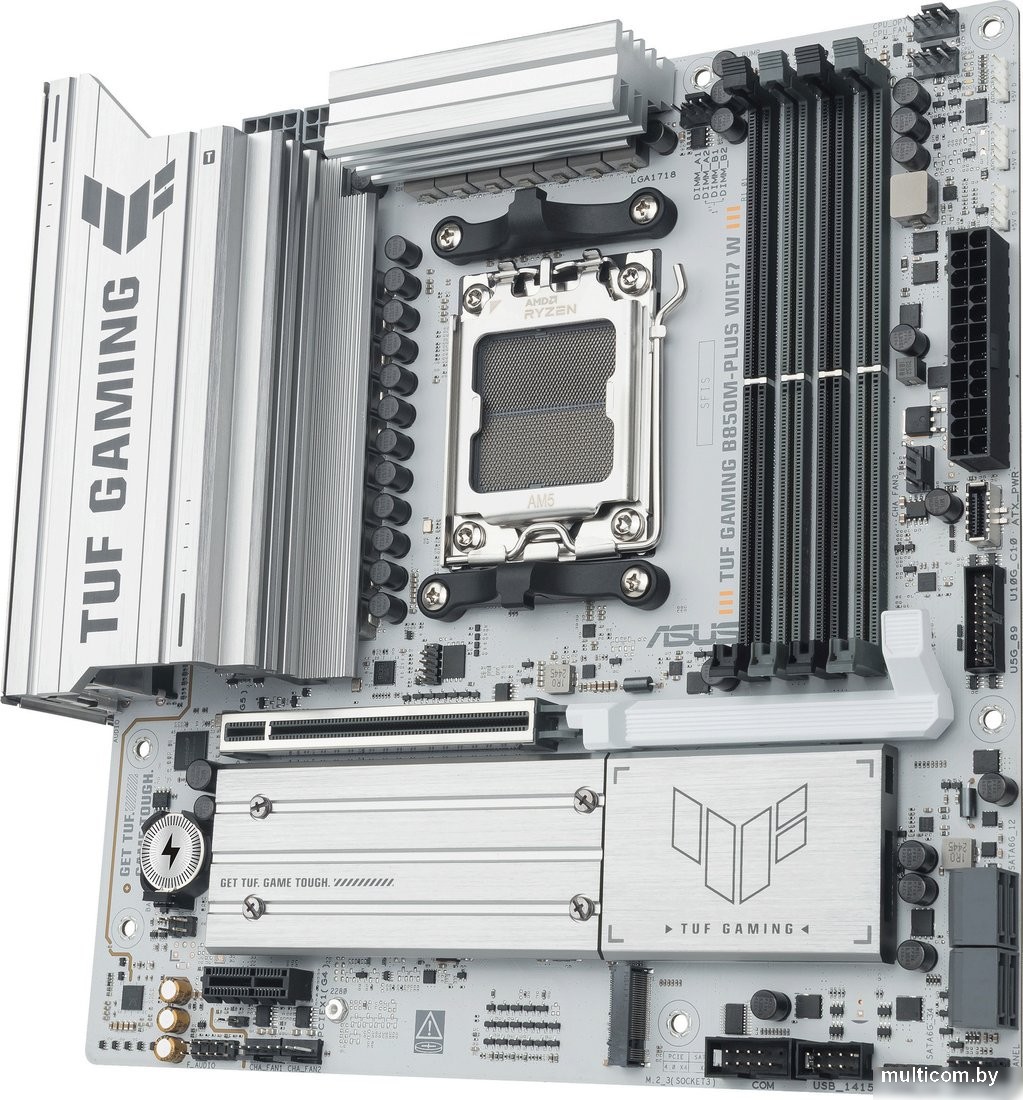 | Информация | -Ключевые характеристики Материнская плата micro-ATX формата с сокетом AM5, поддерживающая процессоры AMD Ryzen 9000, 8000 и 7000 серий. Оснащена 4 слотами для оперативной памяти DDR5 с максимальной частотой до 8000+ МГц OC и общим объемом до 256 ГБ, а также тремя слотами M.2 (включая PCIe 5.0 x4) и четырьмя SATA 6 Гбит/с для накопителей. -Преимущества и отличия Плата выделяется надежной 14+2+1 фазной системой питания с радиаторами для охлаждения VRM, поддержкой Wi-Fi 7 и 2.5 Гбит/с Ethernet, а также встроенным аудиокодеком Realtek ALC1220P (7.1). Заявлена поддержка технологий AMD EXPO и ASUS AEMP для разгона оперативной памяти. -Практичность На борту имеются 12 портов USB на задней панели (включая 20 Гбит/с Type-C), DisplayPort 1.4 и HDMI 2.1 для подключения мониторов, три разъема ARGB 5В для современной адресной подсветки, а также широкие возможности по подключению вентиляторов и СЖО для эффективного охлаждения. -Уникальность Плата использует восемь слоев PCB для стабильности, имеет эксклюзивную защиту TUF LANGuard и Digi+ VRM, а также фирменные функции DIY:Q-Release для легкой замены видеокарты и Q-Latch для быстрого монтажа SSD. Реализована поддержка AI Cache Boost и AI Advisor для оптимизации LLM-нагрузок и помощи в настройках. |