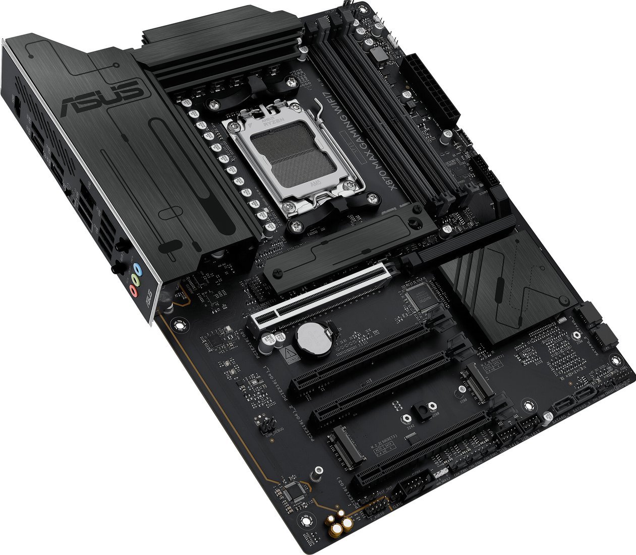 | Информация | - Материнская плата ASUS X870 MAX GAMING WIFI7 предназначена для современных процессоров AMD Ryzen 9000, 8000 и 7000, поддерживает установку до 256 ГБ оперативной памяти DDR5 с максимальной частотой разгона 8000 МГц и работает в двухканальном режиме. Благодаря наличию четырех слотов для оперативной памяти и поддержке профилей AMD EXPO и ASUS AEMP, обеспечивается гибкость и высокие возможности для разгона. - Плата оснащена чипсетом AMD X870 и выполнена в форм-факторе ATX с прочной и стильной черной печатной платой. Она предусматривает эффективное охлаждение фаз питания с помощью радиаторов, а также имеет встроенную RGB-подсветку, что делает ее отличным выбором для сборки игрового или производительного ПК. - Для подключения накопителей предусмотрено три слота M.2 и четыре порта SATA 6 Гбит/с, что позволяет организовать быстрые и объемные системы хранения данных с поддержкой RAID массивов. На плате реализована поддержка последних стандартов PCI Express 5.0, что обеспечивает установку современных видеокарт и других расширительных карт. - Плата оснащена современными сетевыми возможностями:быстрый Ethernet 2.5 Гбит/с, Wi-Fi 7 и Bluetooth 5.4. На задней панели расположены разнообразные разъемы USB (включая два порта USB4 до 40 Гбит/с), HDMI 2.1 и аудиовыходы для 7.1-канального звука на базе кодека Realtek. Плата поддерживает встроенную графику, а также множество дополнительных внутренних разъемов для подключения вентиляторов, подсветки и периферии. |