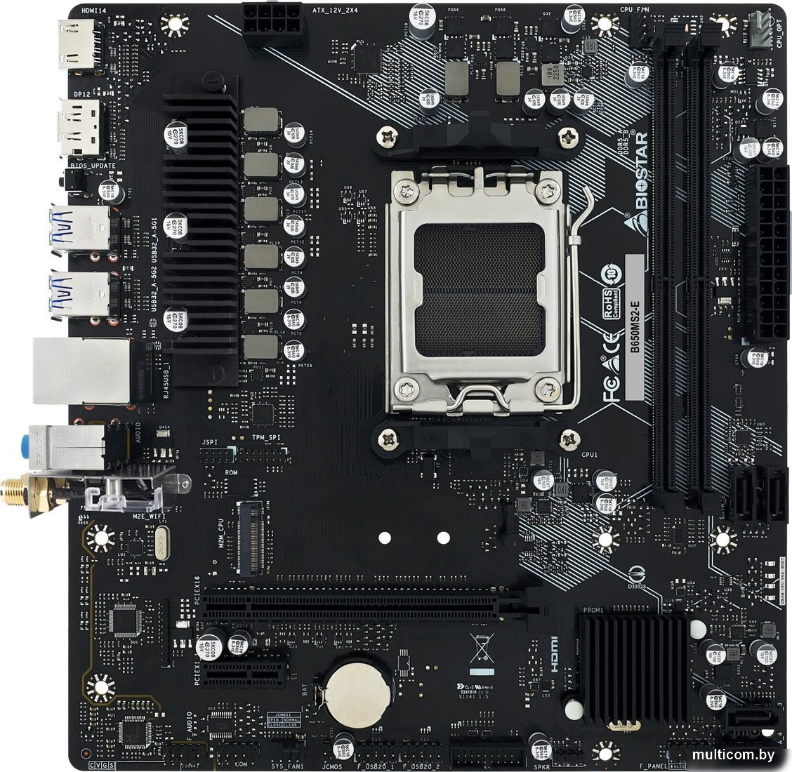 | Информация | - Biostar B650MS2-E - это современная материнская плата формата mATX на базе чипсета AMD B650 с сокетом AM5, предназначенная для установки процессоров AMD Ryzen серий 7000, 8000 и 9000. Она поддерживает новейшую оперативную память DDR5 с максимальной частотой 6000 МГц (OC), что позволяет добиться высокой производительности в играх и рабочих задачах. На плате реализована двухканальная поддержка памяти, а общий объем ОЗУ может достигать 128 ГБ. - Для подключения накопителей предусмотрены четыре разъема SATA III и один слот M.2 (PCIe 4.0 x4), что обеспечивает быстрый доступ к данным и гибкость при выборе конфигурации системы хранения. Модель оснащена гигабитным LAN-портом с пропускной способностью до 2.5 Гбит/с, а также возможностью установки модуля Wi-Fi/Bluetooth через специальный слот M.2 (E Key). - Среди интерфейсов расширения на плате имеются один разъем PCI Express x16 (PCIe 4.0) и один PCI Express x1 (PCIe 3.0), что позволяет установить современную видеокарту и дополнительные устройства. Для вывода изображения доступны HDMI (1.4) и DisplayPort (1.2), что дает возможность подключения современных мониторов с высоким разрешением. - Встроенная аудиоподсистема на базе Realtek ALC897 обеспечивает качественное 7.1-канальное звучание, а для подключения периферии и аксессуаров доступны различные USB-разъемы, включая четыре USB 3.2 Gen1 (5 Гбит/с) и два USB 2.0 на задней панели. Biostar B650MS2-E станет отличным выбором для сборки универсального ПК на базе новых процессоров AMD, сочетая современные технологии, компактные размеры и надежность. |