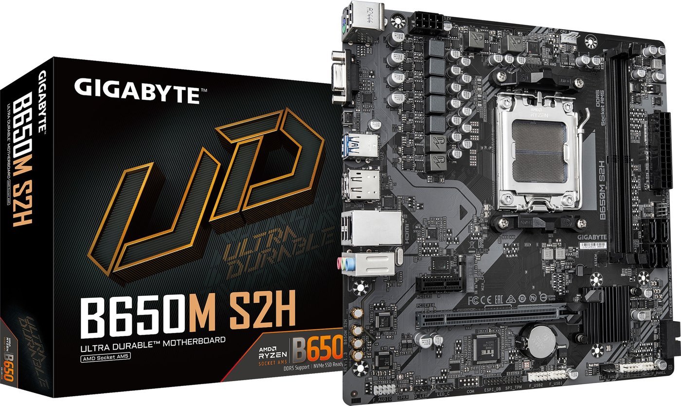 | Информация | - GIGABYTE B650M S2H (rev. 1.3) - это современная материнская плата в формате mATX, созданная для поддержки процессоров AMD Ryzen 7000, 8000 и 9000 серий на сокете AM5. Она оснащена чипсетом AMD B650 и рассчитана на сборку производительных настольных систем благодаря поддержке самых новых технологий и высоких частот оперативной памяти DDR5 до 7200 МГц. - Плата имеет 2 слота DIMM DDR5 с поддержкой до 128 ГБ ОЗУ, что позволяет реализовать двухканальный режим и использовать профили разгона AMD EXPO и Intel XMP для максимальной производительности. Расширенные возможности подключения включают в себя один слот PCI Express x16 (PCIe 4.0 для большинства процессоров), один слот PCIe x1, а также современный слот M.2 PCIe 4.0 x4 для высокоскоростных NVMe SSD и 4 порта SATA 3.0 для классических накопителей. - Для подключения периферии и вывода изображения предусмотрены различные разъемы на задней панели:DisplayPort 1.4, HDMI 2.1, VGA (D-Sub), 4 порта USB 2.0 и 2 порта USB 3.2 Gen1, классический PS/2, а также 3 аудиовыхода 3.5 мм. Есть поддержка встроенной графики (при наличии соответствующего процессора), а сетевое подключение осуществляется через гигабитный Ethernet-интерфейс. - Плата оснащена 5+2+2 фазами питания без радиатора охлаждения VRM и не имеет встроенной RGB-подсветки, однако поддерживает подключение лент ARGB и RGB для кастомизации системы. Внутренние разъемы включают в себя все необходимое для современных корпусов:коннекторы для вентиляторов ЦП и корпуса, подключения фронтальной панели, TPM-модуля, а также дополнительные разъемы для USB и подсветки. Это оптимальный выбор для надежной и функциональной сборки с прицелом на долгосрочную актуальность. |