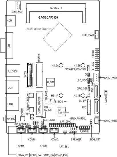 | Информация | На плате присутствуют разъёмы:Mini-PCIe двойного назначения для модулей mSATA SSD;Mini-PCIe (1/2 длины) для модуля WiFi;Слот USIM;Разъем LVDS для подключения системного FP-дисплея;Разъем для усиления аудиосигнала, предусмотрена возможность подключения встроенного динамика мощностью до 2 Вт. |
