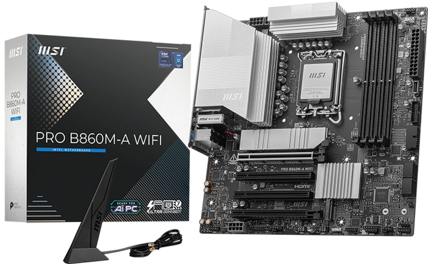 | Информация | - MSI PRO B860M-A WIFI - это современная материнская плата формата mATX, выполненная в черном цвете с серебристыми акцентами, что делает ее универсальным выбором для сборки как в черных, так и белых корпусах. Она предназначена для процессоров Intel Core Ultra под сокет LGA1851 и построена на чипсете Intel B860, обеспечивая высокую производительность для рабочих, игровых и мультимедийных систем. - Плата поддерживает до 256 ГБ оперативной памяти DDR5 с максимальной частотой до 8800 МГц в разгоне, а также профили Intel XMP для быстрой настройки. Для расширения доступны четыре слота PCI Express x16 (включая PCIe 5.0), три полноскоростных M.2 накопителя и четыре порта SATA 3.0, что позволяет подключить большое количество современных накопителей и устройств. - Встроенные модули Wi-Fi 7 (802.11be) и Bluetooth 5.4 обеспечивают максимальную скорость беспроводной передачи данных, а 5-гигабитный LAN-порт подойдет для требовательных пользователей и профессионалов. Для подключения мониторов доступны HDMI 2.1 и DisplayPort 1.4, а также развитая система внешних и внутренних USB-портов, включая Thunderbolt 4 и внутренний разъем Thunderbolt 5 для будущих апгрейдов. - Особое внимание уделено охлаждению и надежности:на фазах питания установлены массивные радиаторы, реализована поддержка современных систем охлаждения процессора и корпуса, а встроенный аудиокодек Realtek ALC897 обеспечивает чистое и качественное звучание. Материнская плата поддерживает ARGB и RGB подсветку, что позволит сделать сборку не только производительной, но и визуально привлекательной. |