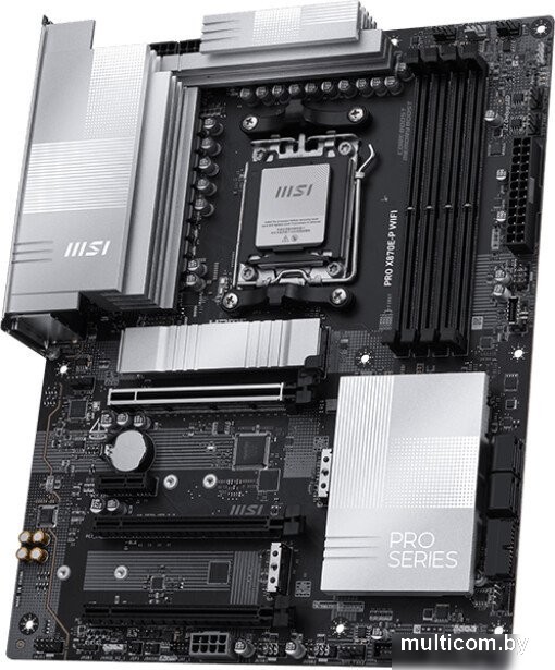 | Информация | - Материнская плата MSI PRO X870E-P WIFI создана для современных систем на базе процессоров AMD Ryzen серий 9000, 8000 и 7000 с использованием сокета AM5 и чипсета AMD X870E. Она поддерживает быструю оперативную память DDR5 объемом до 256 ГБ, включая CUDIMM, с возможностью разгона до 8200+ МГц, а также двухканальный режим работы и технологии AMD EXPO для легкого повышения производительности. - На плате реализована расширенная поддержка накопителей:три слота M.2 (один из которых работает по PCIe 5.0 x4), четыре порта SATA 6 Гбит/с, а также поддержка различных конфигураций RAID для SATA и NVMe SSD. Для подключения видеокарт предусмотрены три слота PCI Express x16 (до PCIe 5.0), а также дополнительные слоты PCIe x1 и x4 для расширения. - MSI PRO X870E-P WIFI оснащена современными интерфейсами подключения:USB4 (до 40 Гбит/с), USB 3.2 Gen 2x2, несколькими портами USB 3.2 Gen1/Gen2, HDMI 2.1, 5G LAN, а также модулем Wi-Fi 7 и Bluetooth 5.4. На плате реализована поддержка встроенного видео (через HDMI и USB4/DP Alt Mode), что позволяет использовать процессоры с интегрированной графикой. - Для стабильной работы и охлаждения массивных компонентов предусмотрены радиаторы фаз питания, множество разъемов для корпусных вентиляторов и СЖО, а также поддержка подсветки ARGB и RGB. Плата выполнена в форм-факторе ATX, имеет черный цвет текстолита и подходит как для офисных, так и для продвинутых пользовательских и рабочих конфигураций. |
