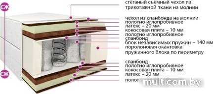 | Информация | Одна из самых комфортных моделей серии матрасов «Классик» на основе блока независимых пружин. Настилы из натурального латексированного кокосового волокна придают матраcу жесткость, сохраняя в то же время возможность независимых пружин повторять контуры тела и точечно распределять нагрузку поддерживая позвоночник в оптимально правильном положении. Обладает хорошим воздухообменом. Наличие латекса с обеих сторон матраса обеспечивает эластичность, упругость и позволяет переносить большие нагрузки. |