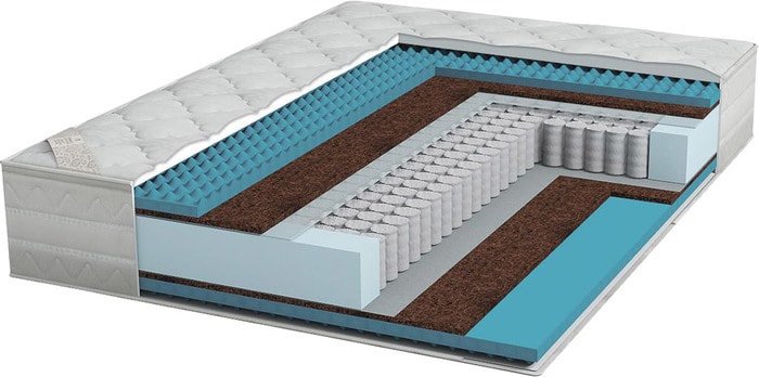 | Информация | Пенополиуретан с массажной нарезкой и натуральная латексированная кокосовая койра - это классика в достижении массажного эффекта индустрии здорового сна.Пена более плотная и вязкая, дышащая, благодаря водной основе создает микромассажный эффект и делает сон крепким, а пробуждение - легким. Независимый пружинный блок дарит исключительный в своем роде комфорт при использовании матраса вдвоем. |