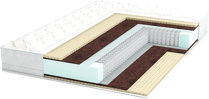| Информация | Основой премиального матраса Space служит независимый усиленный пружинный блок. Более 1000 пружин из высокопрочной легированной стали (6 витков), обеспечивают идеальную анатомичность и адаптируются под любого человека.Матрас одинаковой жесткости с очень упругим перфорированным латексом (натуральный, вспененный сок гевеи) сверху и комфортным слоем кокосовой койры снизу. Слой кокосовой койры над независимыми пружинами обеспечивает длительную эксплуатацию матраса с сохранением анатомических свойств. |