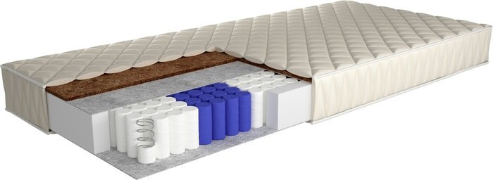| Информация | Асимметричный матрас на основе блока независимых пружин, который равномерно распределяет вес тела, снимает нагрузку с позвоночника и способствует правильному положению спины во время сна. С одной стороны используется кокосовое волокно, которое придает матрасу жесткость. С другой стороны «FiberTerm», что придает матрасу среднюю жесткость и оптимальный уровень комфорта. модель |