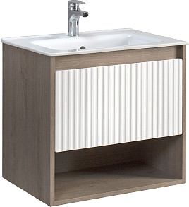 | Информация | Коллекция Долли вместительная, но не громоздкая, красивая, но из простых материалов и без излишнего декора, а еще выглядит воздушно даже в тесном помещении. Удобная мебель, которая подойдет по размеру большинству типовых ванных. Вместительный выдвижной ящик, открытая полка под ними для всяких мелочей, и эргономичная раковина, позволяющая разместить на ней необходимые предметы ухода и косметики. Обратите внимание! Смеситель и умывальник в комплект не входят. |