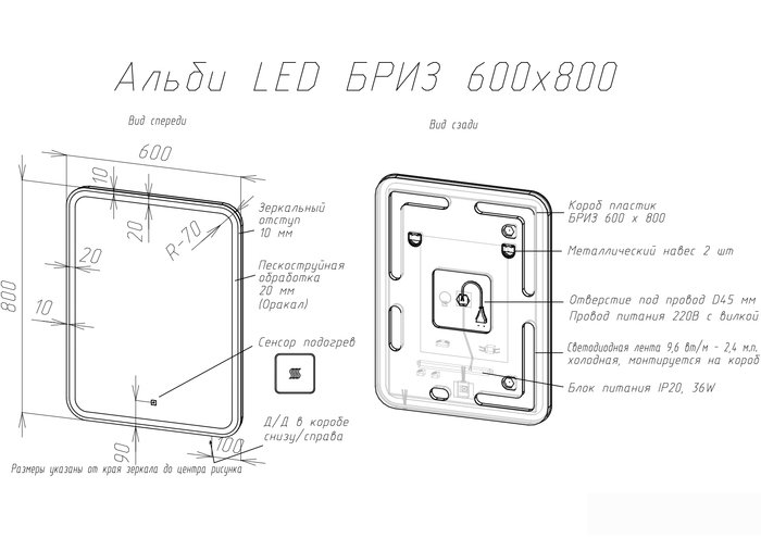 Информация | Led-зеркало с функцией подогрева. Бесконтактный датчик вкл/выкл. Быстрый монтаж. |