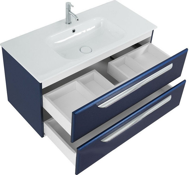 | Информация | -Ключевые характеристики Подвесная тумба под умывальник выполнена из МДФ с покрытием пленкой ПВХ, что обеспечивает прочность и влагостойкость. Размеры изделия составляют 97 см в ширину, 45 см в глубину и 50 см в высоту, что подходит для установки в современных ванных комнатах. Модель оснащена двумя выдвижными ящиками с доводчиками и органайзером пространства для удобного хранения аксессуаров. -Преимущества и отличия Тумба выделяется универсальной модификацией и матовой поверхностью, которая устойчива к царапинам и легко очищается. Хромированная фурнитура придает изделию современный и стильный вид, а наличие крепежей в комплекте облегчает монтаж. Отсутствие угловой конструкции делает модель подходящей для стандартных прямолинейных интерьеров. -Практичность Подвесной тип установки позволяет сэкономить пространство и облегчить уборку пола под тумбой. Органайзер и два выдвижных ящика с доводчиками обеспечивают удобное и тихое использование, а материал МДФ с ПВХ пленкой гарантирует долговечность и устойчивость к влаге. Отсутствие встроенной подсветки и совместимости со стиральной машиной упрощает выбор и установку. -Уникальность Модель относится к коллекции Eco-cer, что подчеркивает экологичность и современный дизайн. Использование пленки ПВХ на фасаде и каркасе в цвете Sapfiro с матовой поверхностью создает эффект стильного и глубокого синего оттенка, который выделяет изделие среди стандартных решений. Наличие органайзера пространства и доводчиков ящиков повышает комфорт эксплуатации. Читать дальше |
