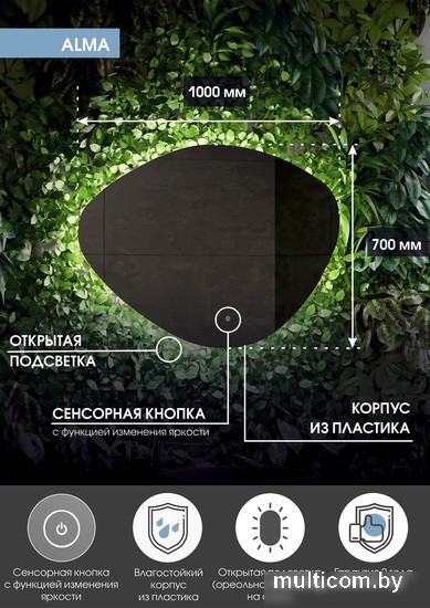 | Информация | Зеркало "Alma" 700х1000 изготовлено из зеркального полотна толщиной 4 мм производства ведущего европейского производителя зеркал AGC. Модель отличается стильным минималистическим дизайном. В качестве элемента LED-подсветки используется светодиодная лента с плотностью диодов 120 шт./м мощностью 9,6Вт/м. Это создает мягкое и равномерное свечение по периметру всего зеркала. Электрические компоненты размещены внутри корпуса, край полотна обработан еврокромкой, что обеспечивает надежную защиту от случайных порезов при контакте с изделием. Управление подсветкой осуществляется при помощи сенсорной кнопки, вынесенной на лицевую панель для удобства настройки необходимой яркости. |