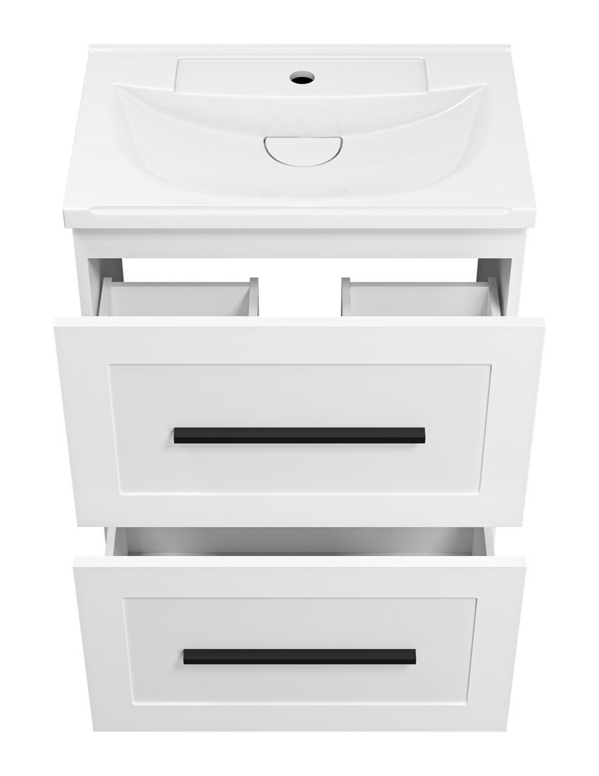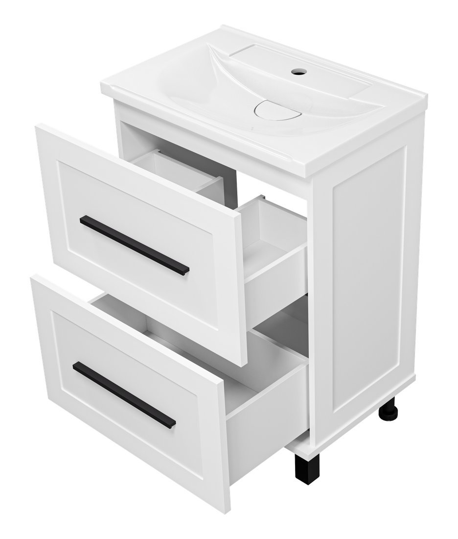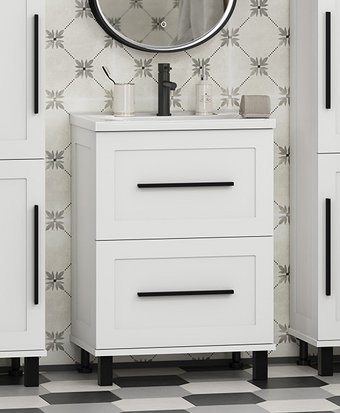 | Информация | -Ключевые характеристики Напольная тумба под умывальник выполнена из МДФ с эмалевым покрытием, что обеспечивает прочность и долговечность. Модель оснащена двумя выдвижными ящиками с доводчиками для удобного хранения. Размеры тумбы составляют 59.5 см в ширину, 40.5 см в глубину и 82 см в высоту, что делает её подходящей для компактных ванных комнат. -Преимущества и отличия Белый матовый цвет и черная фурнитура придают изделию современный и стильный вид. Универсальная модификация позволяет устанавливать тумбу с умывальником Misty Evva 60 D, обеспечивая гармоничный комплект. В комплект входят все необходимые крепежи и опоры для надежной установки. -Практичность Два выдвижных ящика с доводчиками обеспечивают плавное и бесшумное открытие, что повышает комфорт использования. Матовая поверхность фасада устойчива к отпечаткам и легко очищается. Отсутствие встроенной подсветки и корзины для белья упрощает конструкцию и снижает стоимость. -Уникальность Использование эмалевого покрытия на МДФ каркасе и фасаде обеспечивает стойкость к влаге и механическим повреждениям. Черная фурнитура добавляет контраст и современный акцент, выделяя изделие среди аналогов. Комплектация с подвесами и опорами облегчает монтаж и повышает устойчивость конструкции. Читать дальше |