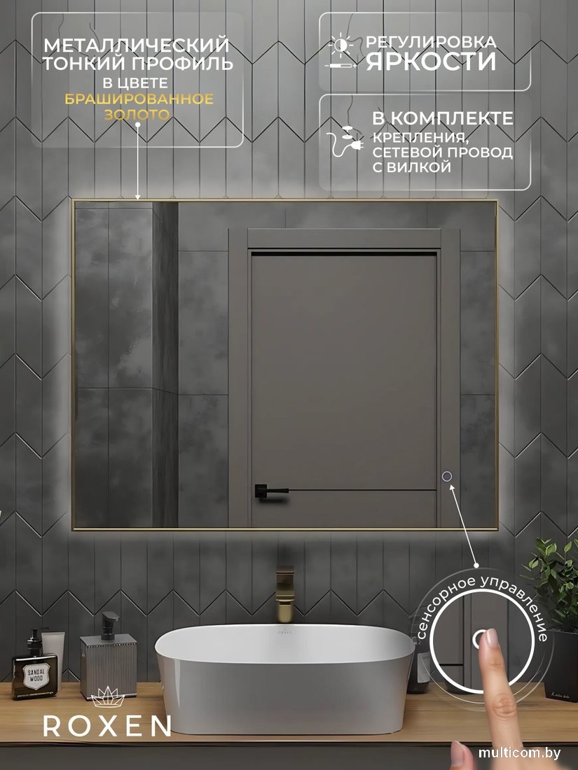 | Информация | Зеркало Roxen Frida с LED-подсветкой на 3 цвета свечения. Модель в тонком металлическом профиле в цвете брашированное золото Интерьерная подсветка создает современный дизайн интерьера и визуально расширяет пространство. Сенсорная кнопка SmartTouch срабатывает при легком касании, имеет возможность регулировки яркости свечения (Dimmer). Модель имеет 3 цвета свечения: холодный, теплый и нейтральный, каждый цвет так же регулируется по яркости. Благодаря удобному расположению кнопки включения и продуманной системе креплений вы можете расположить зеркало горизонтально либо вертикально и создать свой неповторимый интерьер. Зеркала Roxen предназначены для использования в помещениях с повышенной влажностью. В отличие от аналогичных моделей, в зеркалах Roxen используется светодиодная лента LED Stripe - 120 диодов на 1 метр, которая обеспечивает мягкое равномерное свечение по всему периметру изделия и позволяет использовать его не только как яркий интерьерный элемент, но и как дополнительный источник освещения комнаты. Модель изготовлена по технологии Cooper Free: без примеси меди, свинца и формальдегидов, что делает их экологически чистыми и безопасными. Зеркальное полотно премиального качества от японского концерна AGC Glass (*Asahi Glass Co, Ltd), толщиной 5 мм, обеспечивает глубокое и чистое отражение. Термополированное стекло (Planibel Clear AGC) гарантирует максимальную цветопередачу без искажения CRI90. Каждое зеркало проходит антикоррозийную обработку. Особенности: зеркальное полотно AGC Glass толщиной 5 мм светодиодная лента LED Stripe: 120 диодов на 1 метр подсветка на 3 цвета свечения: холодный, теплый и нейтральный встроенный Dimmer - возможность регулировки яркости каждого цвета срок службы светодиодной ленты: более 50 000 часов мощность светодиодной ленты: 10 Вт/м класс энергопотребления А+++ международный класс защиты IP44, защищает от влаги и пыли выключатель – сенсорный серебряная амальгама с защитным слоем без примесей свинца антикоррозийная обработка диэлектрическое покрытие напряжение подключения - 50-60 Гц сетевой провод с вилкой длиной 2 м задняя часть из ПВХ дюбеля и саморезы в комплекте гарантия на полотно - 10 лет, на электрику - 1 год |