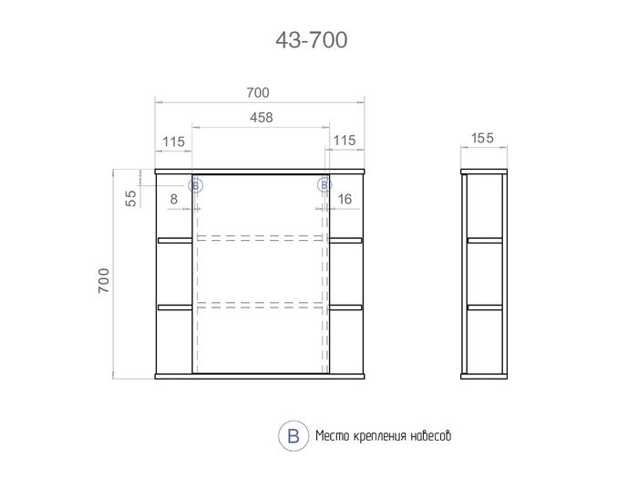 | Информация | 1 дверца с зеркалом; 2 полки ЛДСП; 4 полки ЛМДФ. |