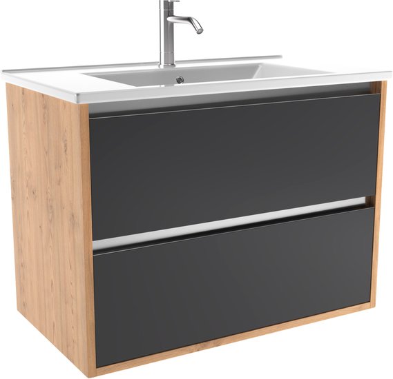 ЗОВ Тумба под умывальник Женева 80 (дуб/черный)