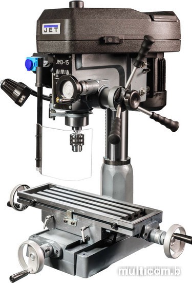 | Информация | Сверлильно-фрезерный станок JMD-15 представляет собой универсальный тип станочного оборудования, выпускаемого компанией JET. Модель рассчитана на выполнение полного спектра фрезерных и сверлильных работ, нарезания резьбы, выполнения других технологических операций. Оборудование разработано для индивидуального использования, пригодно для производственного цикла. Мощный двигатель и сама конструкция станка рассчитаны на длительные режимы обработки. Станок имеет мощную литую станину из серого чугуна. Массивная стойка дополняет прочность и устойчивость всей конструкции. Особенностью модели JMD-15 является наличие механизма поворота фрезерной головки на 360 0, облегчая технологические манипуляции в процессе обработки заготовок. Станок оснащен функцией контроля над глубиной сверления, повышая качество обработки и производительность.Сверлильно-фрезерный станок этой модели имеет конструкцию, рассчитанную на выполнение большого объема работы по обработке заготовок. Станок оснащен шпинделем с конусом МК-3 с зажимной тягой М12. Шпиндель имеет опору, усиленную коническими подшипниками для повышения жесткости во время вращения, при этом ход пиноли составляет 90 мм. Станок обеспечивает нормальную работу с режущими инструментами, диаметр которых составляет при сверлении до 25 мм, при фрезеровании торцевой фрезой до 63 мм. Оборудование позволяет осуществлять вращение шпинделя в обоих направлениях, вправо и влево. Качество обработки заготовок обеспечивается наличием функции микроподачи шпинделя. Вылет шпинделя составляет 200 мм и имеет механическую регулировку.Модель оборудована мощным асинхронным электродвигателем - 1,3 кВт, обеспечивающий частоту вращения шпинделя в диапазоне 100-2160 об/мин. Станок оборудован ременным приводом с концевым выключателем, позволяющим устанавливать частоту вращения шпинделя в режиме 12 передач. Двигатель имеет реверсный ход, позволяя осуществлять нарезание резьбы.Станок имеет мощный крестовый стол с Т-образными пазами. Рабочий стол оснащен прецизионным механизмом перемещения. Количество пазов – 3 при ширине 14 мм.Вес оборудования в оснащенном состоянии - 170 кг. В комплекте к станку идут торцевая фреза диаметром 63 мм, сверлильный патрон, механические тиски. |