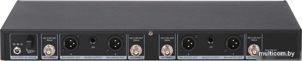 | Комплект поставки | - 4 радиомикрофона - настольный приемник - аудиокабель 6.3 мм - 6.3 мм - батарейки стандарта AA - адаптер питания для приемника - набор крепежа для приемника - документация |