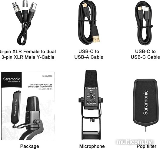 | Комплект поставки | - настольная подставка- поп-фильтр- кабель (USB Type-C - USB Type-A)- кабель (USB Type-C - USB Type-C)- кабель (5-pin XLR - 2x3-pin XLR)- документация |