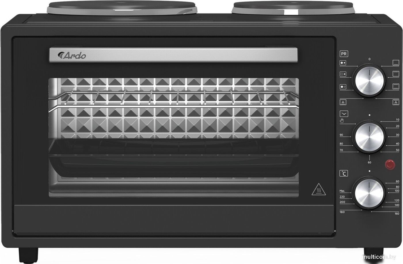| Информация | -Мини-печь ARDO MO3831HPA2 - это компактное и функциональное решение для кухни, позволяющее готовить разнообразные блюда благодаря объёму 38 литров и наличию трёх режимов работы. Модель оснащена одной стеклянной дверцей, что обеспечивает хороший обзор во время приготовления. -В конструкции предусмотрена электрическая варочная поверхность с одной конфоркой (hot plate), что делает устройство универсальным для выпечки и разогрева пищи. Механический таймер рассчитан на 90 минут, что удобно для контроля времени приготовления. -Корпус выполнен в современном цвете антрацит, а внутренняя поверхность оснащена стандартными эмалированными противнями и решеткой, что облегчает уход за прибором и расширяет возможности использования. В комплект входят стандартный квадратный эмалированный противень, решётка и круглый эмалированный противень. -Мини-печь ARDO MO3831HPA2 отличается простым механическим управлением, надежностью и возможностью готовить различные блюда как в духовке, так и на варочной поверхности. Благодаря своим размерам (508 x 306 x 338,5 мм), она отлично подойдет для небольшой кухни, офиса или дачи. |
