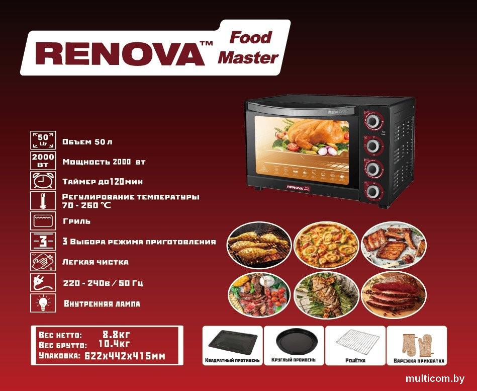 | Информация | ??Текст описания составлен при помощи искусственного интеллекта. - Мини-печь Renova MO-50GLTB1 — это идеальное решение для тех, кто ценит удобство и функциональность на кухне. С объемом 50 литров, она позволяет готовить блюда для всей семьи, а механический таймер поможет вам не забыть о времени приготовления. - Благодаря мощному нагреву в 2000 Вт и максимальной температуре до 250 °C, вы сможете быстро и равномерно запекать, жарить и грилить. Три режима работы обеспечивают разнообразие в приготовлении, а наличие верхнего и нижнего нагрева делает процесс еще более эффективным. - Освещение внутри мини-печи позволяет следить за процессом приготовления, не открывая дверцу. В комплекте идет круглый противень и варежка, что делает использование устройства еще более удобным. Эмалевая поверхность внутренних стенок облегчает уход за печью и предотвращает прилипание пищи. - Не забывайте, что правильное использование и уход за мини-печью помогут продлить срок ее службы и сохранить отличные результаты приготовления. - Мини-печь Renova MO-50GLTB1 станет вашим надежным помощником на кухне, позволяя готовить вкусные и разнообразные блюда с легкостью и удовольствием! |