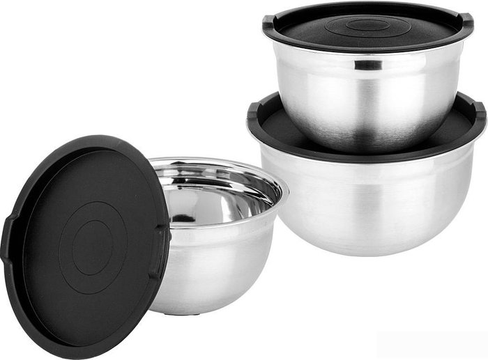 | Информация | Материал крышки: пластик. Объем: 4000 мл (большая), 2600 мл (средняя), 1300 мл (малая). Диаметр: 26 см (большая), 22 см (средняя), 18 см (малая). Можно мыть в посудомоечной машине. |
